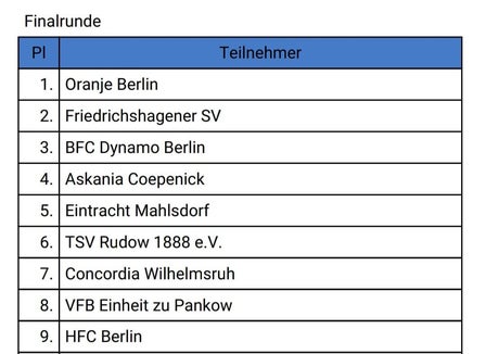 Oranje Berlin gewinnt im Finale gegen den Gastgeber Friedrichshagener SV in einem spannenden Finale nach 0:0 in der regulären Spielzeit, im 9 Meter Schießen mit 4:5. Somit ist das Team aus Westend der Titelverteidiger im nächsten Jahr 2025